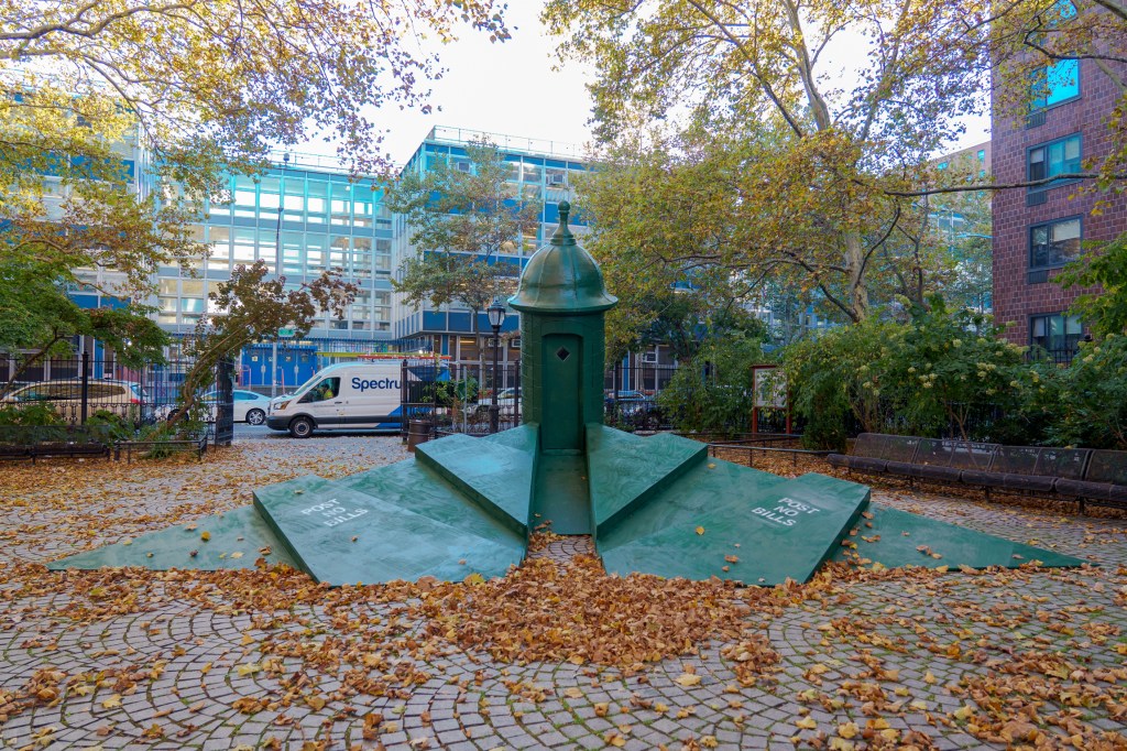 For centuries, and still…(anticipated completion), made in collaboration with Zaq Landsberg, recreates a guard tower (or Garita, in Spanish) from the historic colonial fortresses of Old San Juan, built out of NYC construction fencing material. Echoing the hastily painted green plywood walls, paint sprayed “Post No Bills» stencils, and everyday interventions such as buffed out graffiti and commercial posters, these elements represent a NYC visual language, which creates a visually specific link to Puerto Rico, its colonial legacy to the US, and the history of migration between both locations.